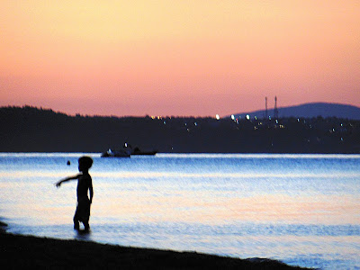 Τα καλοκαιρινά μας όνειρα, αποκτούν απροσδιόριστες μορφές.... Βλέπουμε πρόσωπα τα χαρακτηριστικά των οποίων δεν μπορούμε να ξεχωρίσουμε, η μορφή τους είναι ακαθόριστη και θολή... Μοιάζουν με μαύρες σιλουέτες που ρίχνουν τα δικά τους όνειρα στο κύμα, πετώντας πέτρες στη θάλασσα. Τρέχουν ανέμελα σαν μικρά παιδιά όπως τρέχουν πίσω από τα βλέφαρά μας οι πολύχρωμες εικόνες των ονείρων μας. Και καθώς το λυκόφως τα τυλίγει, γίνονται ένα με το σκοτάδι. Το μόνο που σπάει την απόλυτη σιωπή, είναι οι φωνές τους, που κάποια στιγμή ξεθωριάζουν κι αυτές, γίνονται ψίθυρος. Στο τέλος μένει μόνο ένας αντίλαλος, ένας απόηχος των ευχών μας μέχρι να διαλυθεί κι αυτός στα βελούδινα κύματα της πραγματικότητας. Τον κόσμο που υπάρχει μέσα στο μυαλό μας, τις πιο βαθιές μας επιθυμίες, τις αγγίζουμε μόνο στα όνειρά μας. Όσο και να προσπαθούμε να τις κρατήσουμε κοντά μας, εκείνες μπλέκονται στα κλαδιά της αληθινής ζωής, τρέχουν μακριά κάθε φορά που ξημερώνει και πετούν ψηλά, μοιάζοντας με σκιές πουλιών που ξεθωριάζουν στο άπειρο